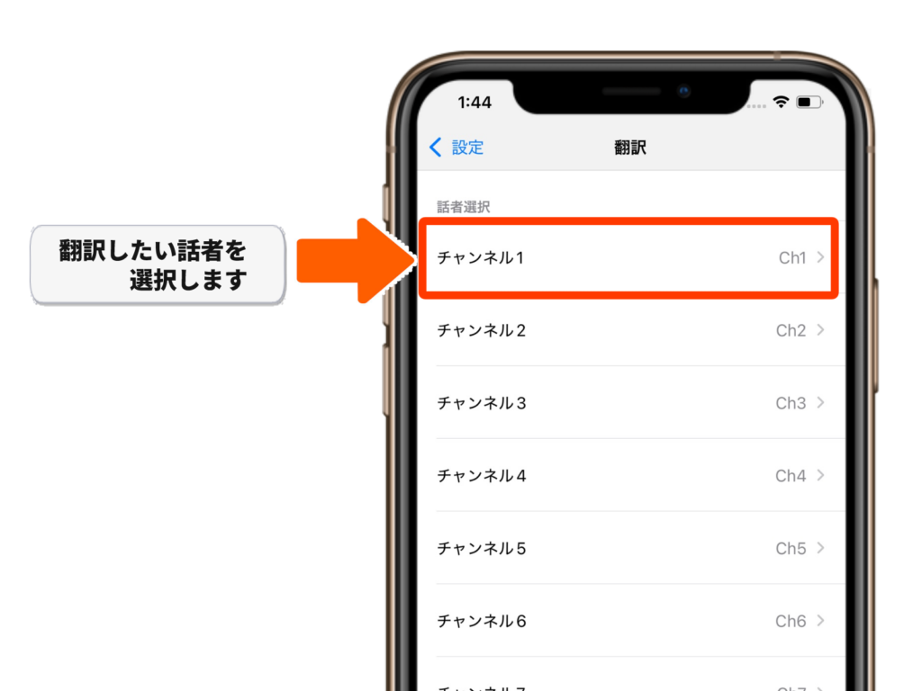 「設定」→「翻訳」と進み、「話者選択」から翻訳したい話者を選択してください。